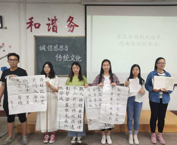此次活动以中国传统书法为载体,旨在通过书写诚信感恩与传统美德文化使同学们进一步认识到诚信是立足之本,深刻增强对大学生的道德培养和素质建设力度,并鼓励同学们敦促自己坚守诚信,做一个“言必信,行必果”的合格大学生,让中国书法承载诚信这一优良传统美德得以进一步传承和发扬。(宣传中心报道)